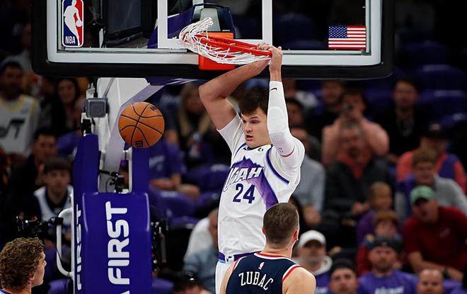 在此前的NBA常规赛中,主场作战的犹他爵士队出人意料地以129-108轻松击败洛杉矶快船队。本场比赛过后,爵士队取得了新赛季的开门红,但快船队本场比赛表现出的糟糕状态和竞争力着实令人担忧。本场比赛,爵士队首发中锋沃克·凯斯勒的表现让人印象深刻。凯斯勒出战28分40秒,投篮7中7,三分线外2中2,罚球8中6。凭借运动比赛100%的命中率,他全场拿下22分9篮板4助攻2抢断4盖帽。他还有1次失误和5次犯规,正负值为+13。凯斯勒在进攻端展现出了全面的得分能力。他不仅在篮下拥有出色的得分能力和进攻能力,投篮的稳定性也引人注目,而且他还表现出了一定的传球能力和策应能力。此外,凯斯勒还拥有强大的车架防护和内卫能力防守端的强大能力。他还可以在篮板保护方面发挥关键作用。凯斯勒在本场比赛中的表现不仅仅是一名普通的蓝领中锋。他只是打出了顶级蓝领中锋的水平。凯斯勒出生于2001年7月,今年24岁,身高213厘米,体重111公斤。他是奥本大学的内线球员,在2022年NBA选秀中以首轮第22顺位被爵士队选中。上赛季NBA常规赛,凯斯勒总共出战58场82场比赛,场均出场30分钟。场均贡献11.1分、12.2个篮板、1.7次助攻、0.6次抢断和2.4次盖帽,其中4.6个进攻篮板、1.5次失误和2.2次犯规。他的投篮命中率为66.3%,三分命中率为17.6%,罚球命中率为52%。在此前对阵波特兰开拓者队的季前赛中,凯斯勒在25分51秒的时间内9投6中,三分线后1投1中,罚球2投1中的玩耍时间。他拿下14分、10个篮板、8次助攻、2次抢断、2次盖帽,近乎三双,其中还包括5个进攻篮板、1次失误、3次犯规。凯斯勒上赛季的表现只能算平庸。今年夏天,包括洛杉矶湖人队在内的多支球队都对凯斯勒感兴趣。只是湖人最终不愿意支付更多的选秀权作为筹码,这也导致交易没有完成,爵士最终选择留住凯斯勒。从凯斯勒季前赛和本场比赛的表现来看,他绝对展现出了巨大的进步和提高。他不仅在防守端保持了极高的水平,在进攻端也完成了令人难以置信的转变。他的投篮稳定性以及传球和策应方面的表现都出乎意料。如果他能继续这样的表现,湖人队不交易他肯定会遭受巨大的损失。特别声明:以上内容(如有图片或视频)由自媒体平台“网易号”用户上传发布。本平台仅提供信息存储服务。